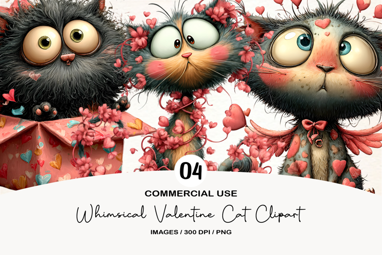 Similar Design Products to Whimsical Valentine Cat Clipart
