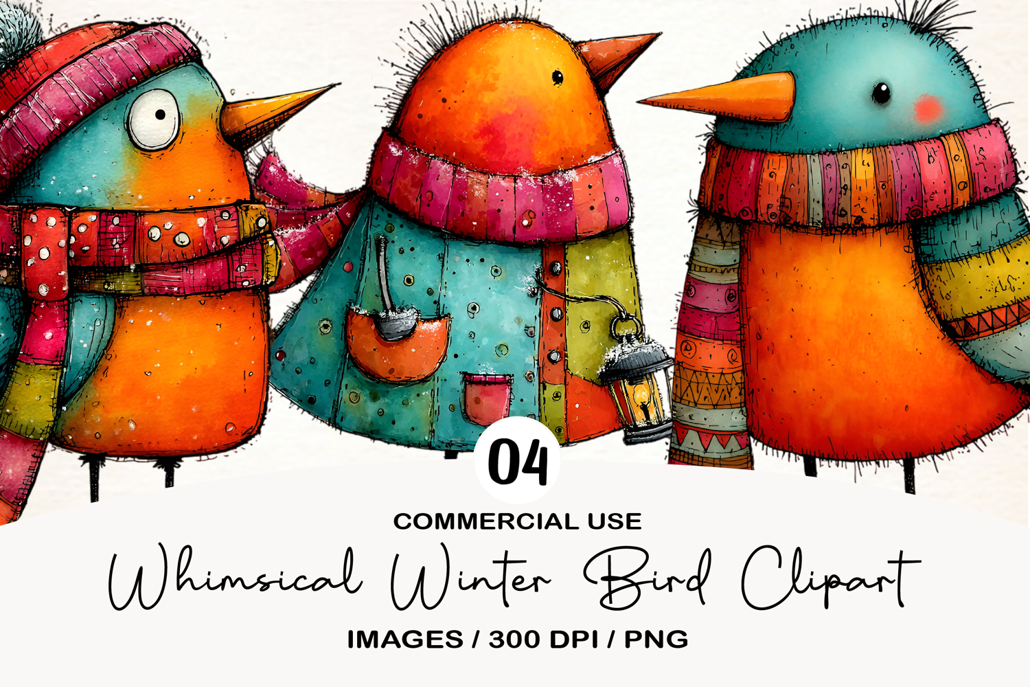 Whimsical Winter Bird Clipart Sublimation