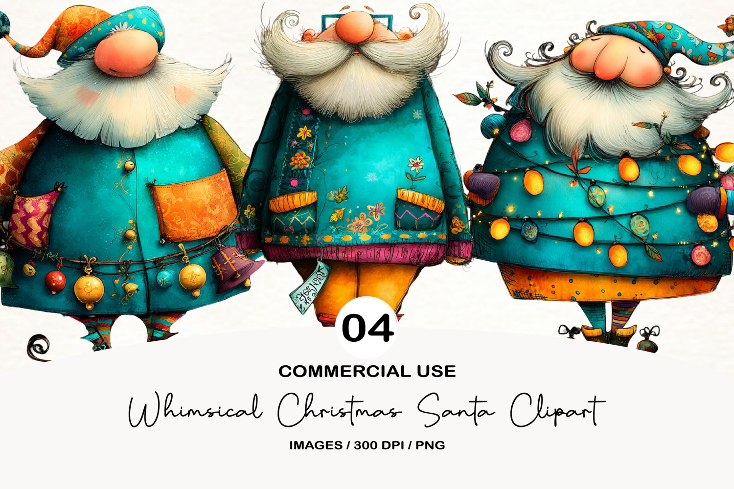 Whimsical Christmas Santa Clipart PNG example image 1