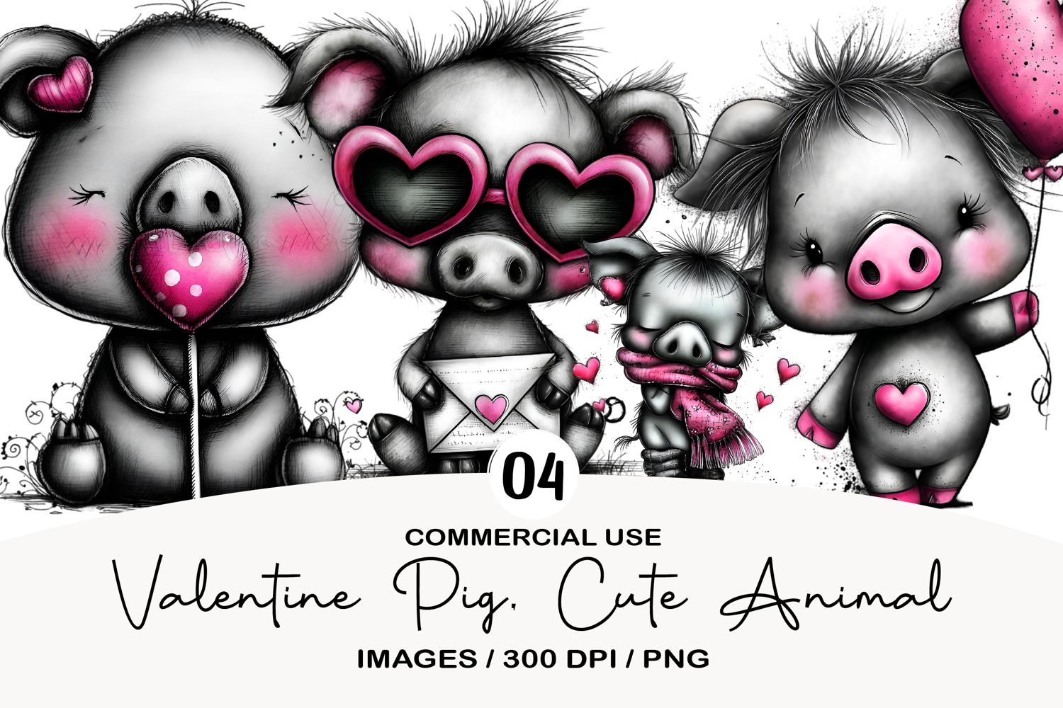 Similar Design Products to Valentine Pig, Cute Animal Clipart