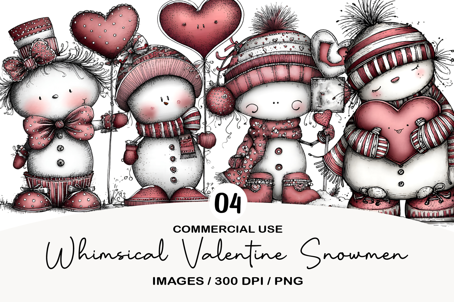 Similar Design Products to Whimsical Valentine Snowmen Clipart