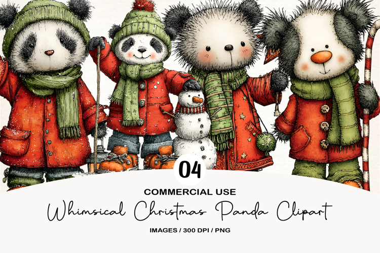 Similar Design Products to Whimsical Christmas Panda Clipart