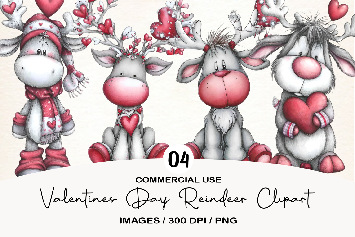 Valentines Day Reindeer Clipart Sublimation