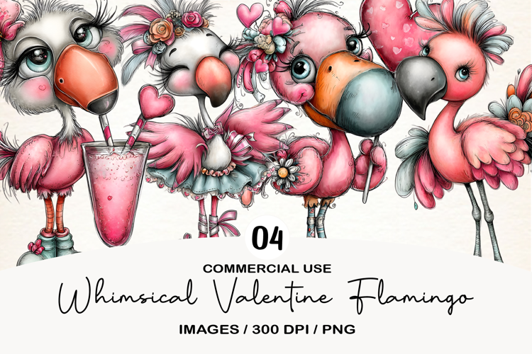 Similar Design Products to Whimsical Valentine Flamingo PNG Set