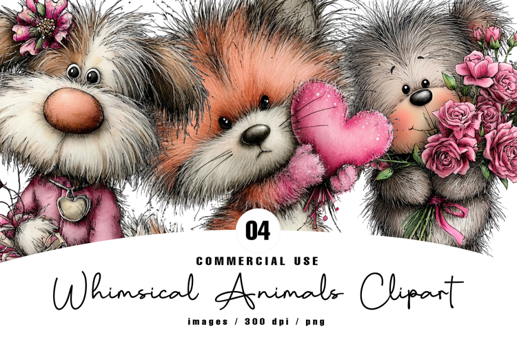 Valentines Whimsical Animals Clipart