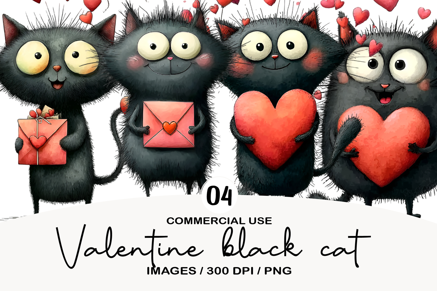 Valentine black cat Clipart example image 1