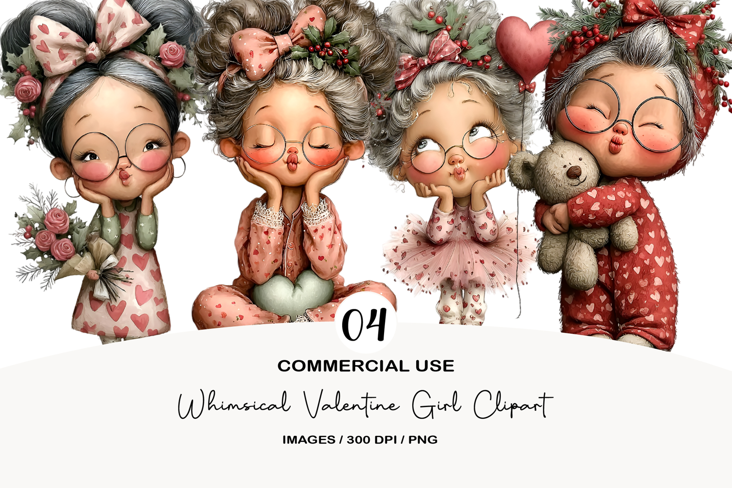 Whimsical Valentine Girl Clipart