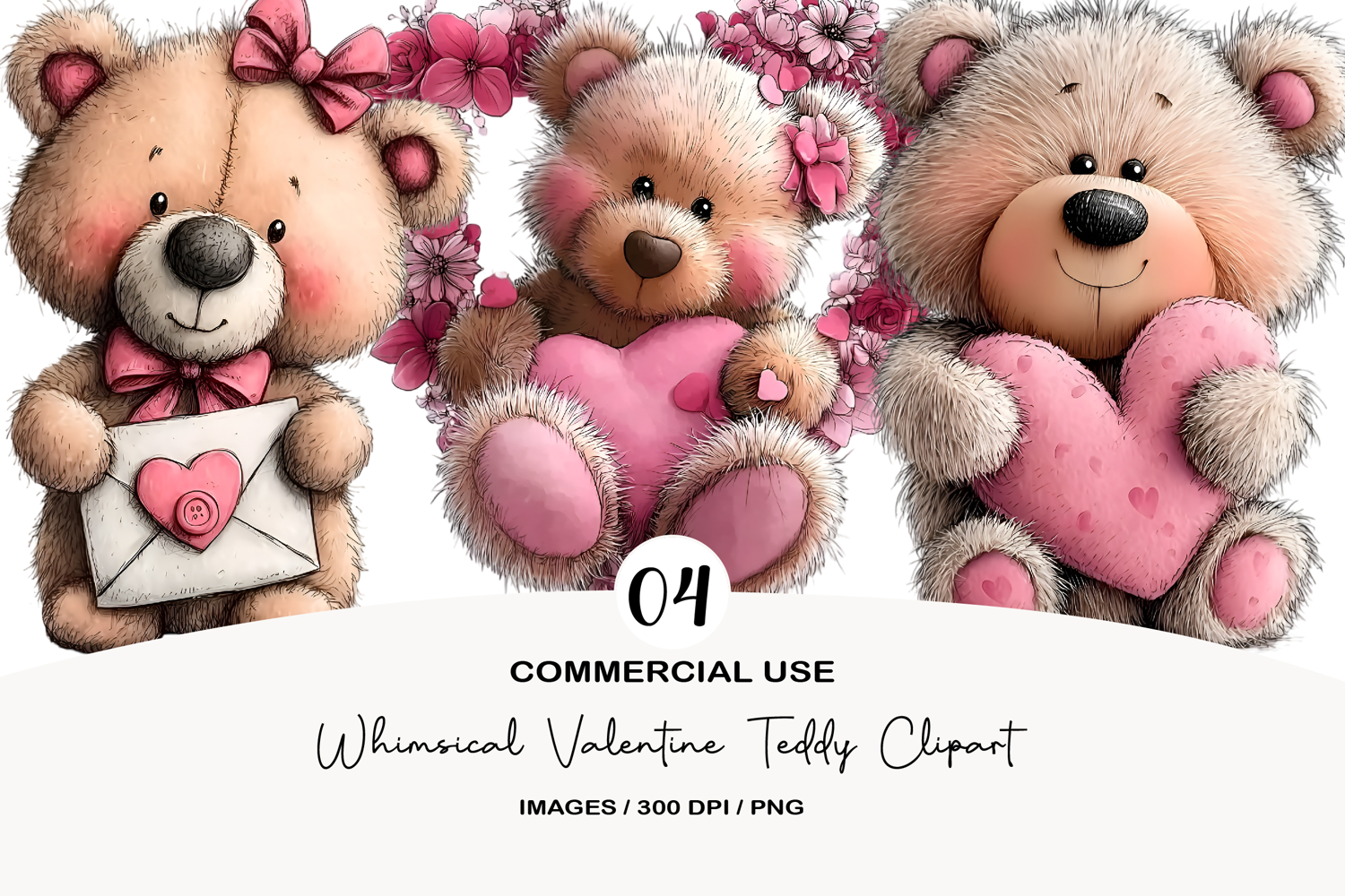 Whimsical Valentine Teddy Clipart