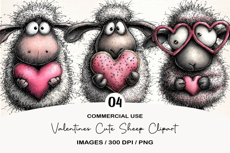 Valentines Cute Sheep Clipart example image 1
