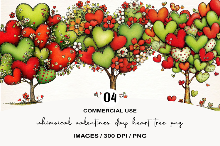 whimsical valentines Day heart tree png example image 1