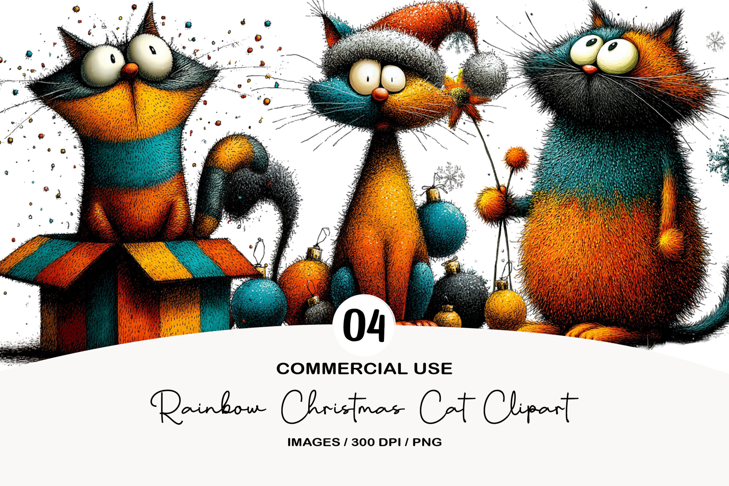 Similar Design Products to Whimsical Rainbow Christmas Cat Clipart