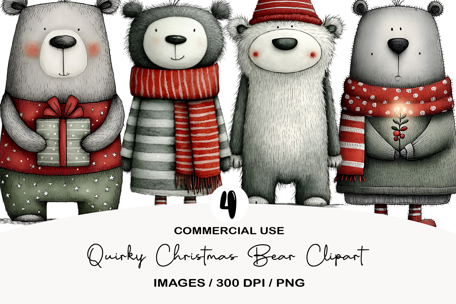 Quirky Christmas Bear Clipart example image 1