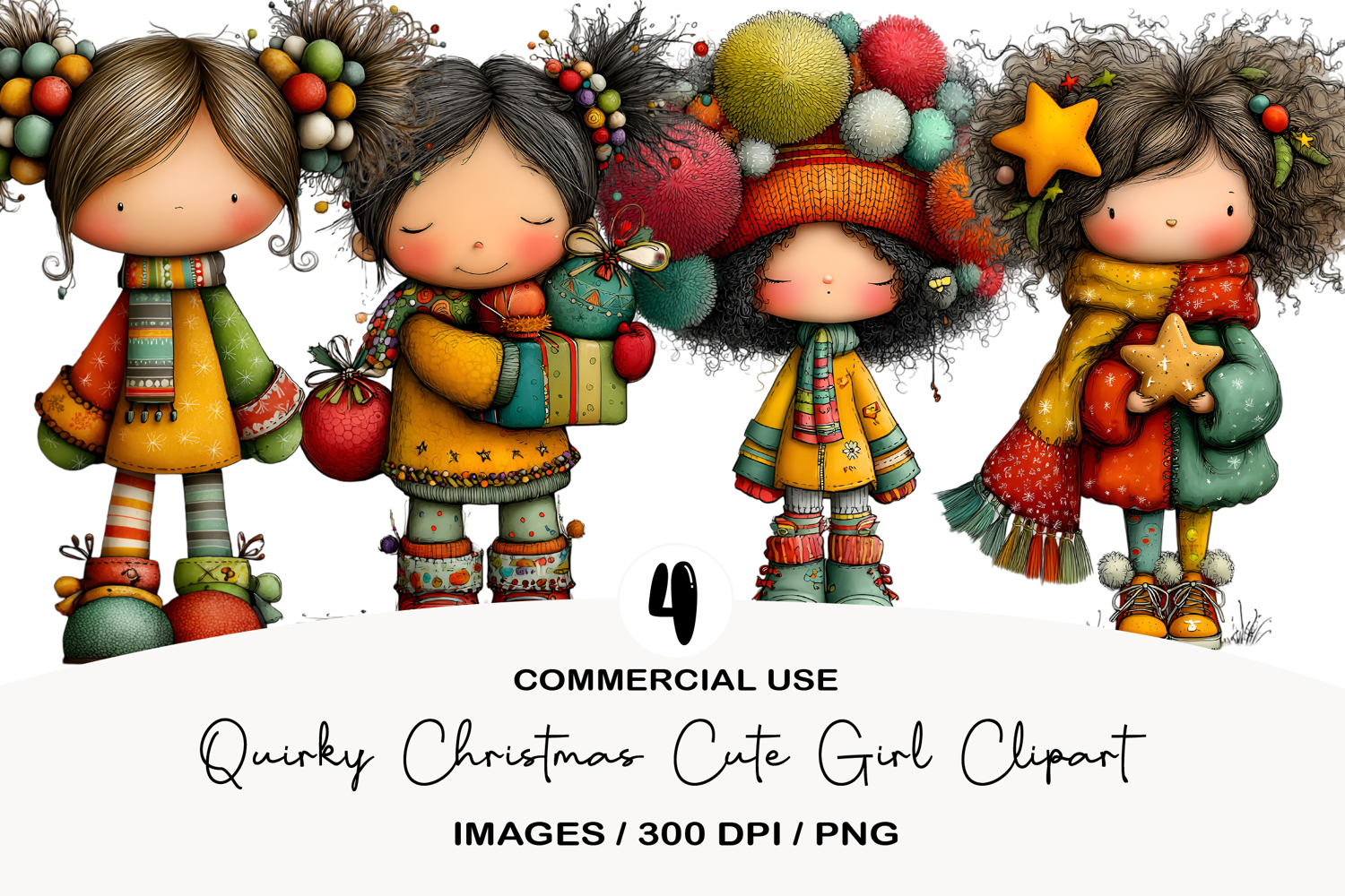 Similar Design Products to Quirky Christmas Cute Girl Clipart