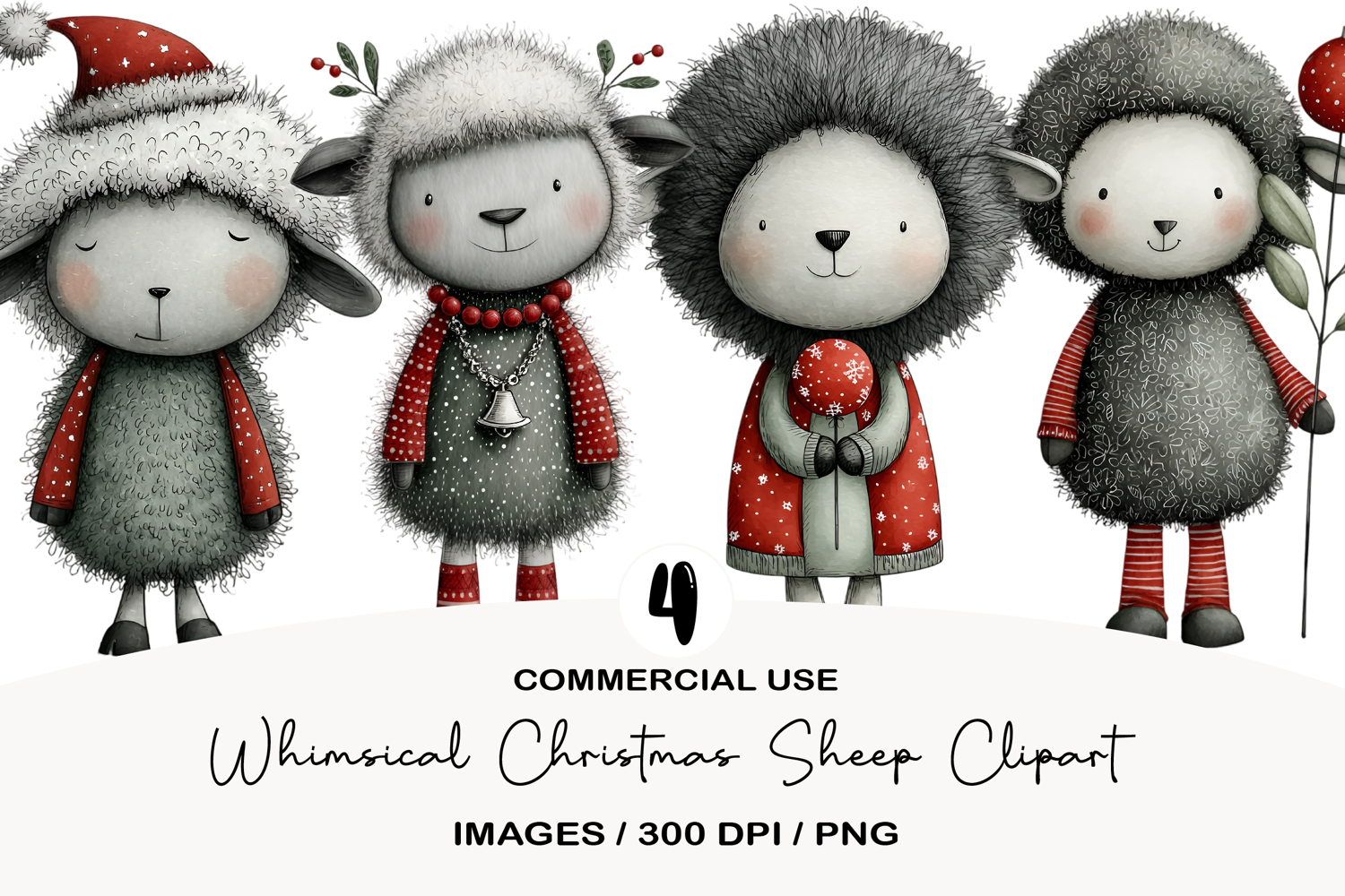 Similar Design Products to Whimsical Christmas Sheep Clipart