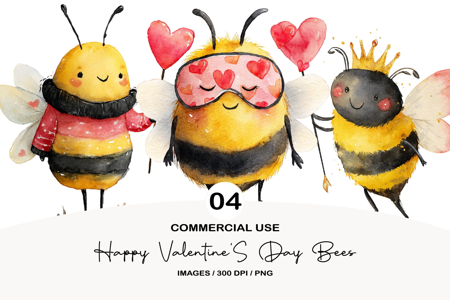 Watercolor Design Clipart Watercolor Clipart Digital Download Sublimation Design Sublimation Designs Valentine's Sublimation Valentine's Png Happy Valentine's Day Bees