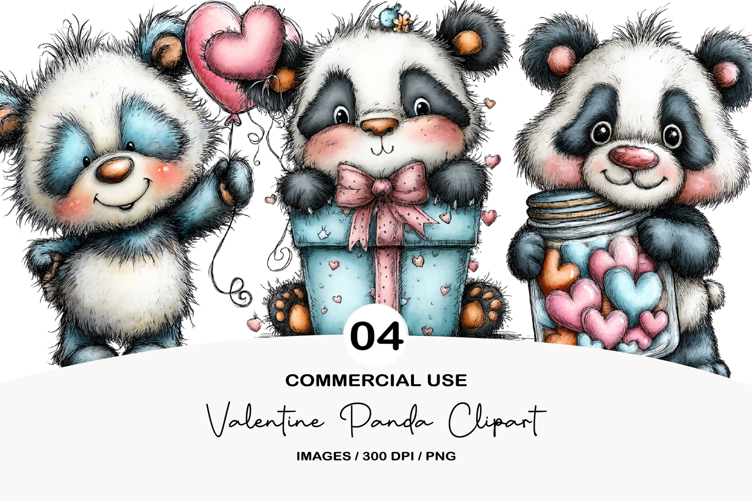 Valentine Panda Clipart example image 1