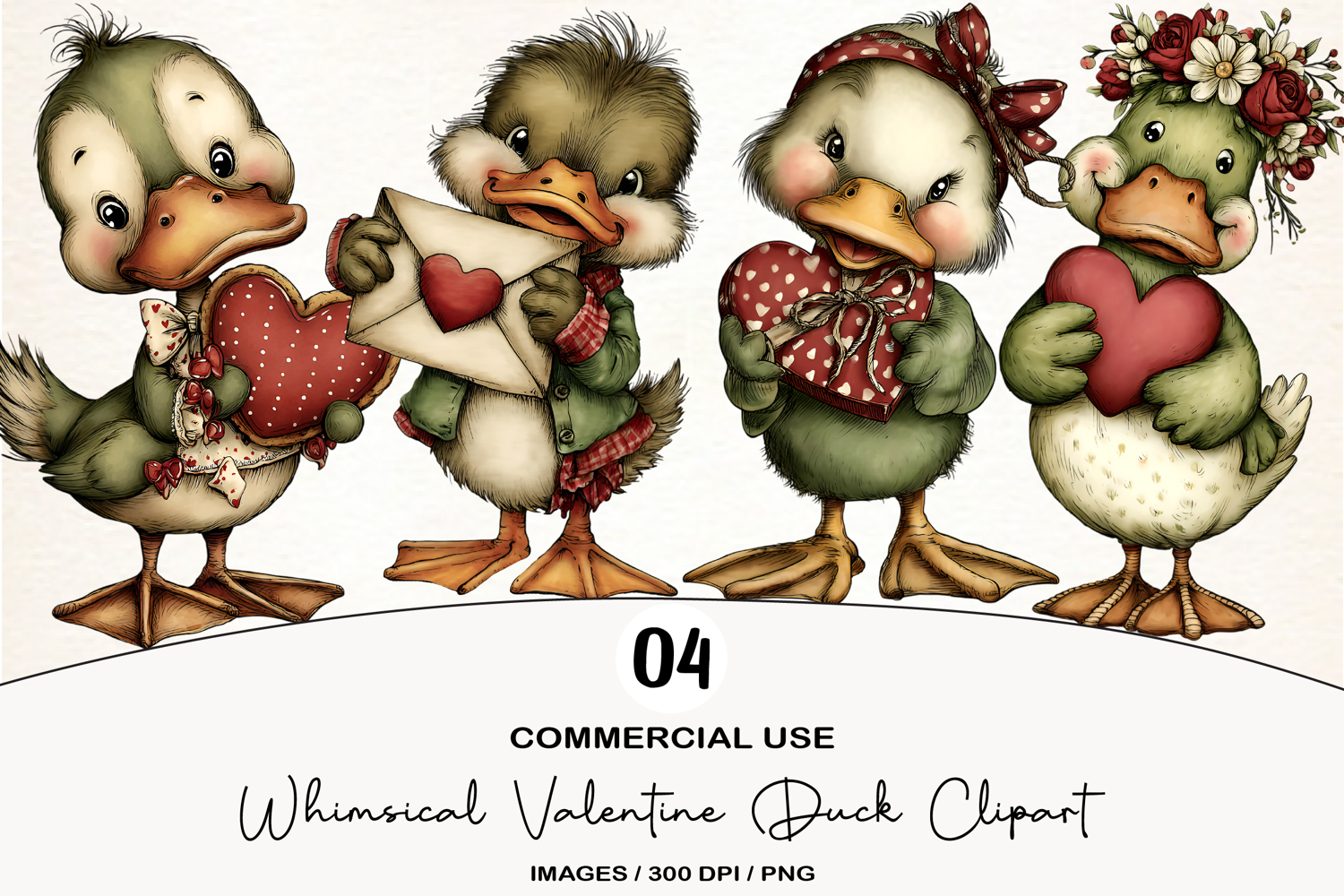 Similar Design Products to Whimsical Valentine Duck Clipart
