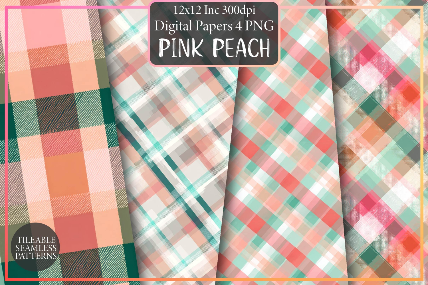 Pink Peach and Mint Plaid Pattern Design, Sublimation Design