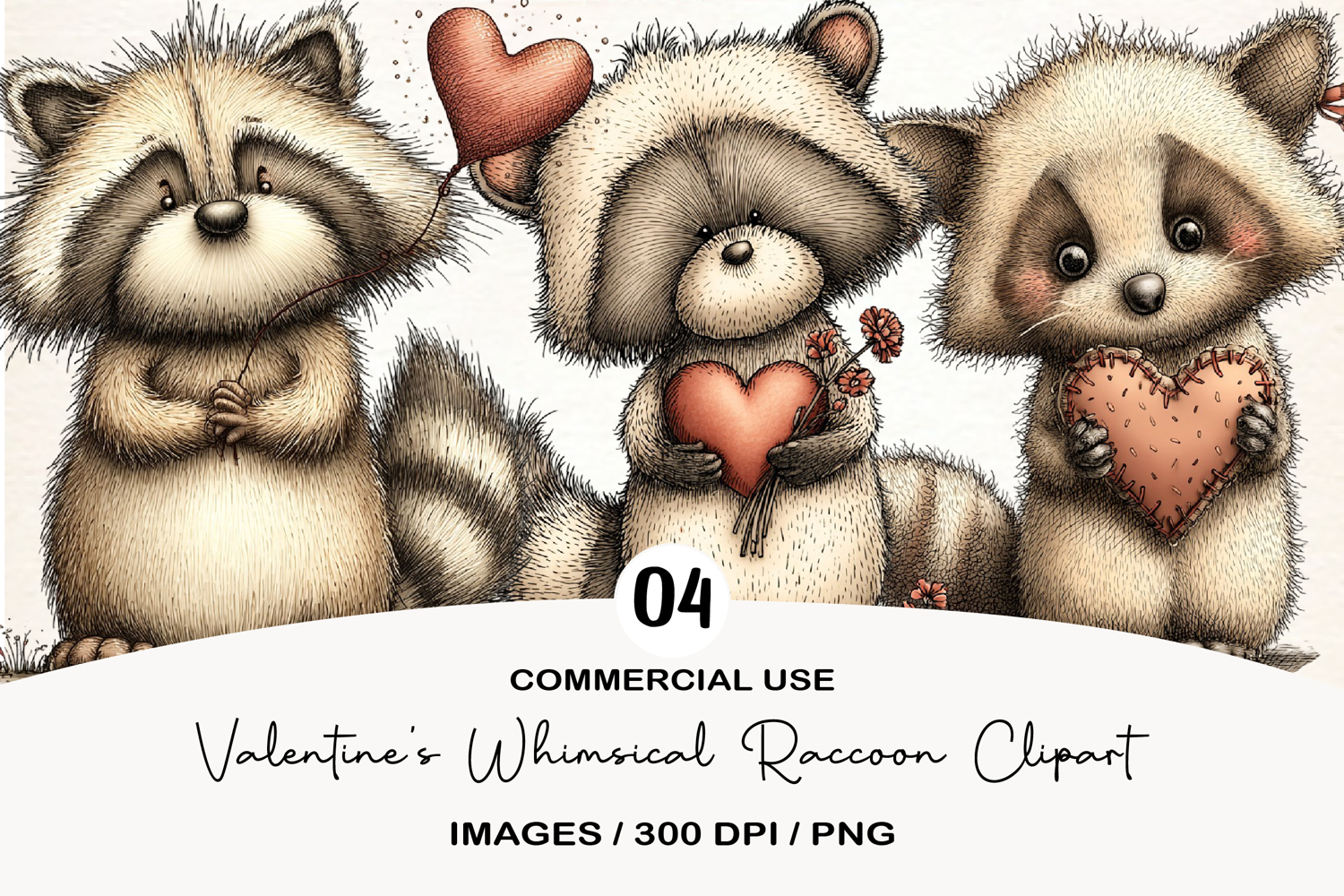 Similar Design Products to Valentine's Whimsical Raccoon Clipart