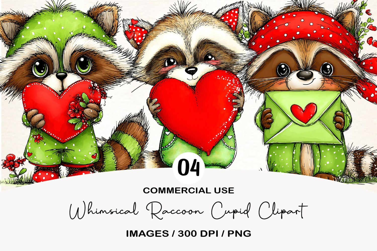 Whimsical Raccoon Cupid Clipart example image 1