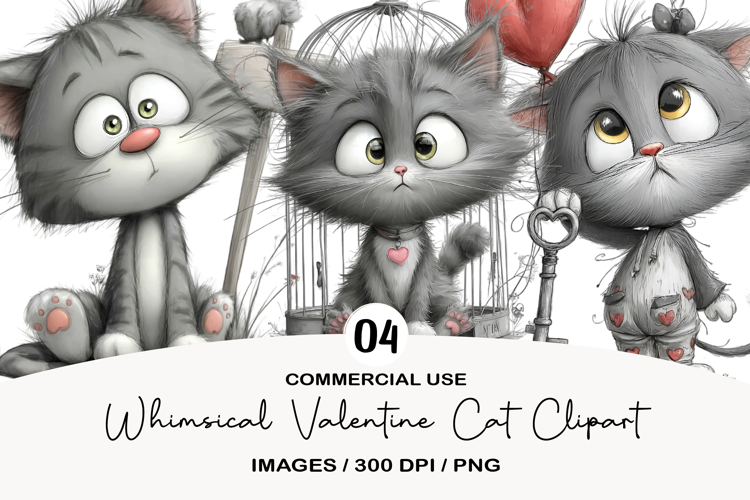 Whimsical Valentine Cat Clipart