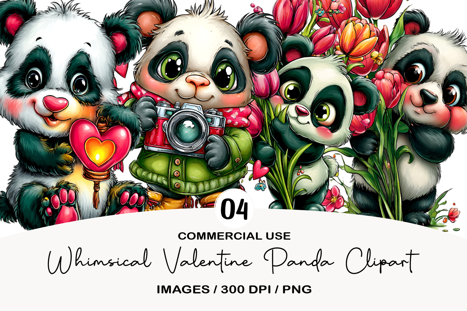 Similar Design Products to Whimsical Valentine Panda Clipart