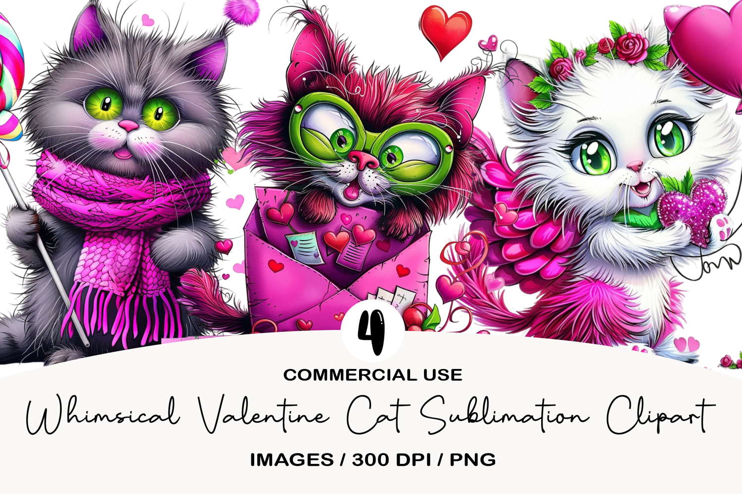 Similar Design Products to Whimsical Valentine Cat Sublimation Clipart
