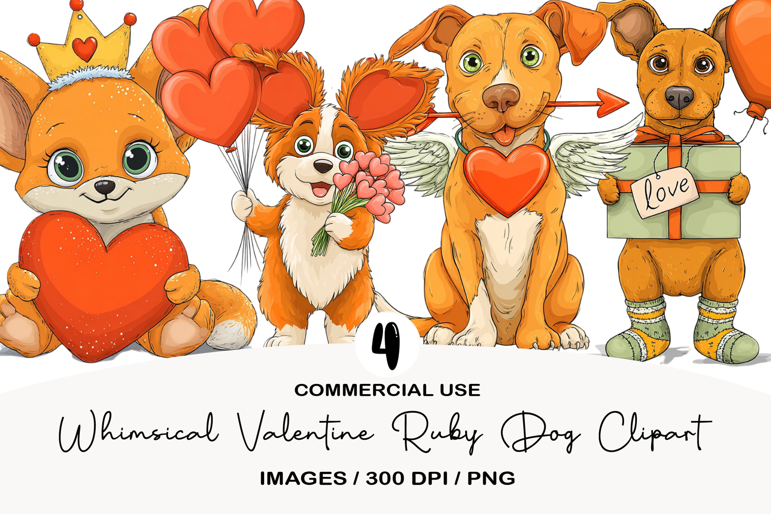 Whimsical Valentine Ruby Dog Clipart example image 1