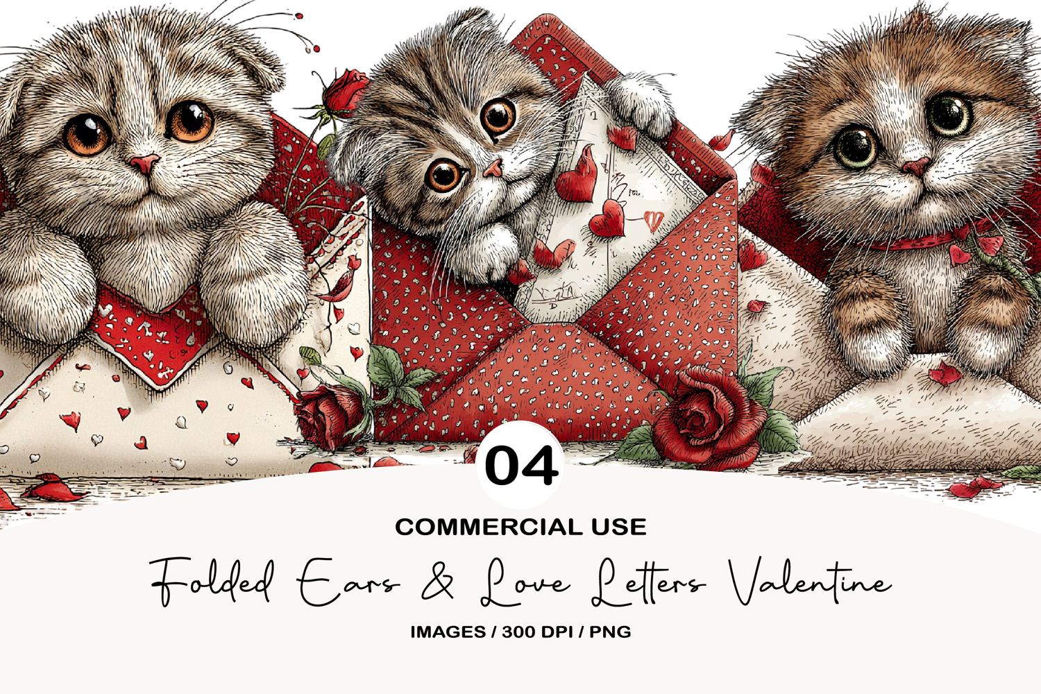 Folded Ears & Love Letters Valentine PNG example image 1