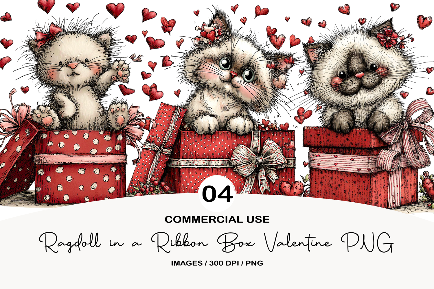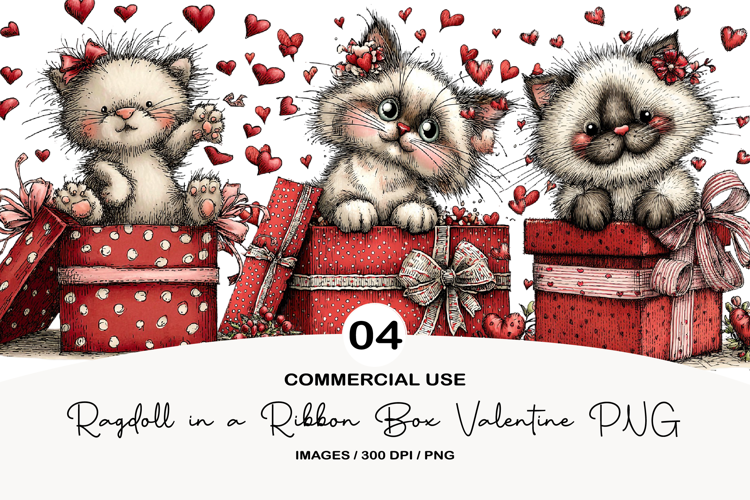 Ragdoll in a Ribbon Box Valentine PNG example image 1