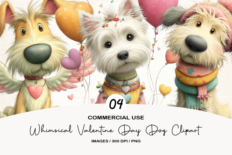 Similar Design Products to Whimsical Valentine Day Dogs Clipart