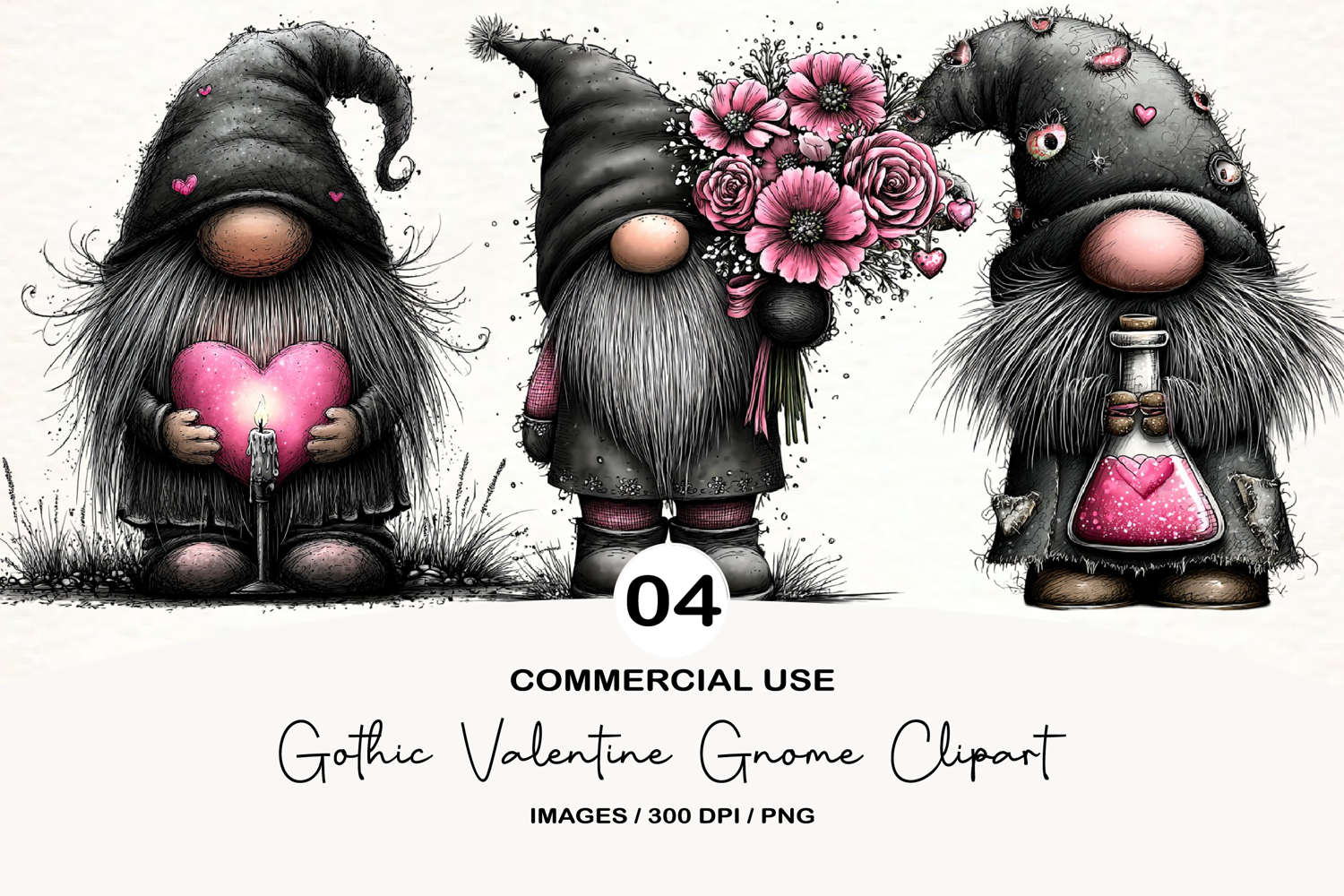 Gothic Valentine Gnome Clipart example image 1