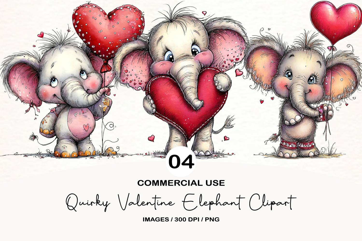 Similar Design Products to Quirky Valentine Elephant Clipart