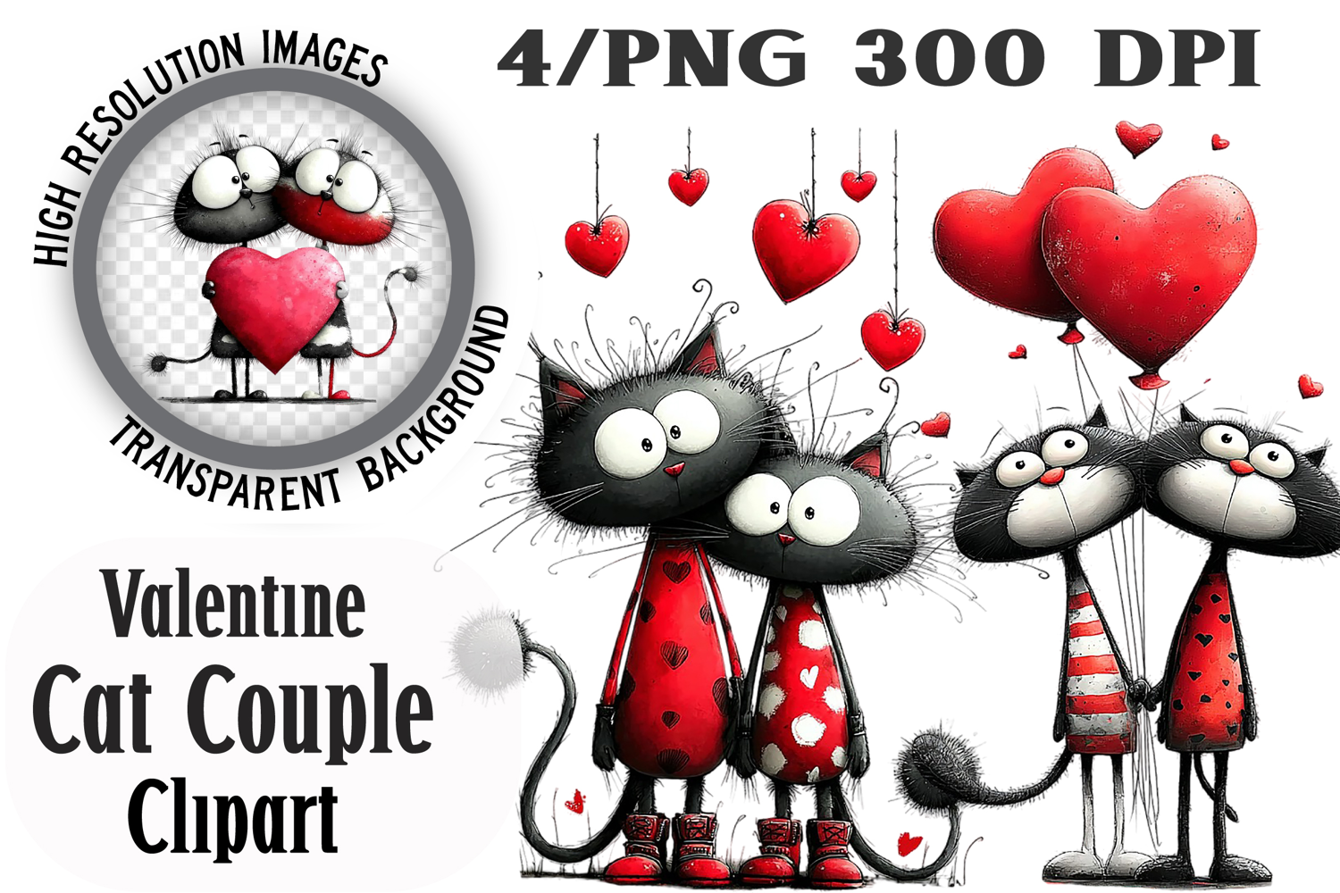 Valentine Romantic Cat Couple Clipart PNG example image 1