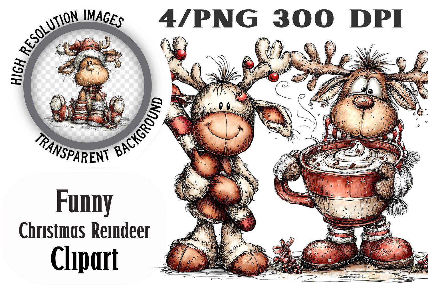 Funny Christmas Reindeer Clipart PNG example image 1