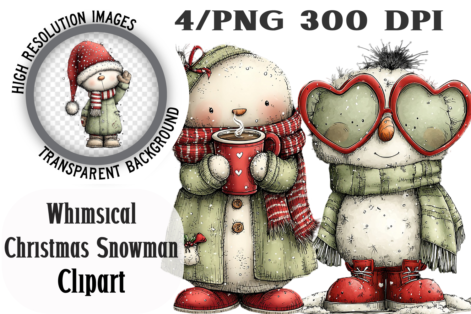 Whimsical Christmas Snowman Clipart PNG example image 1