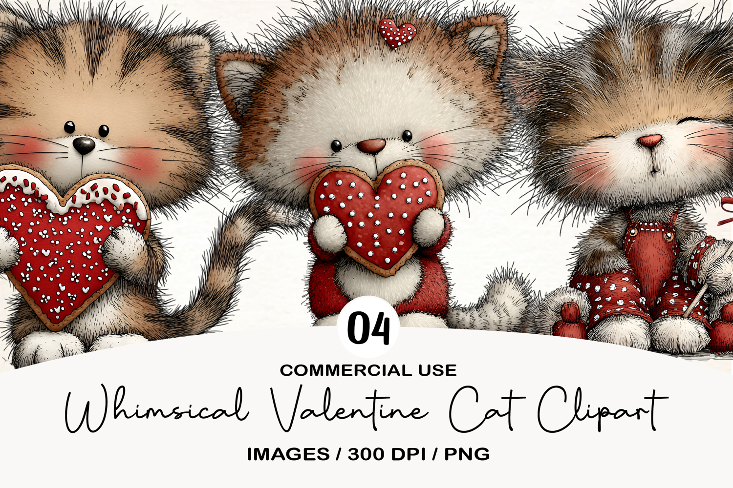 Whimsical Valentine Cat Clipart