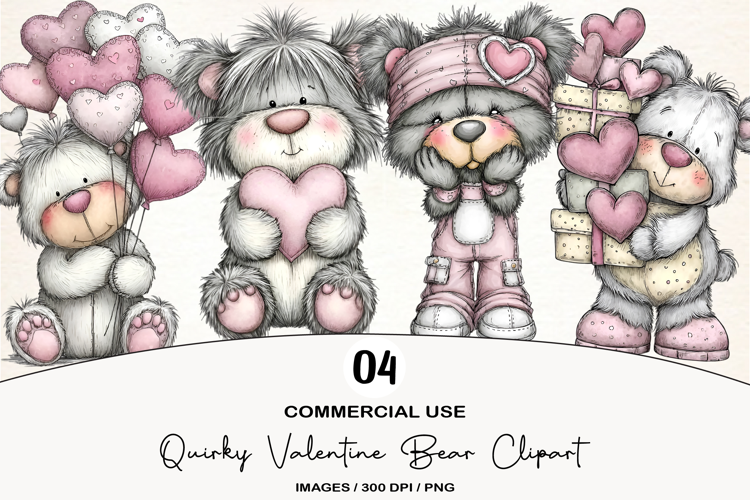 Love Heart Clipart Heart Clipart Valentine Clipart Sublimation Animal Clipart Valentine Sublimation Watercolor Valentine's Clipart Quirky Valentine Bear Clipart