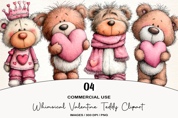Whimsical Valentine Teddy Clipart