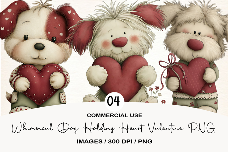 Similar Design Products to Whimsical Dog Holding Heart Valentine PNG