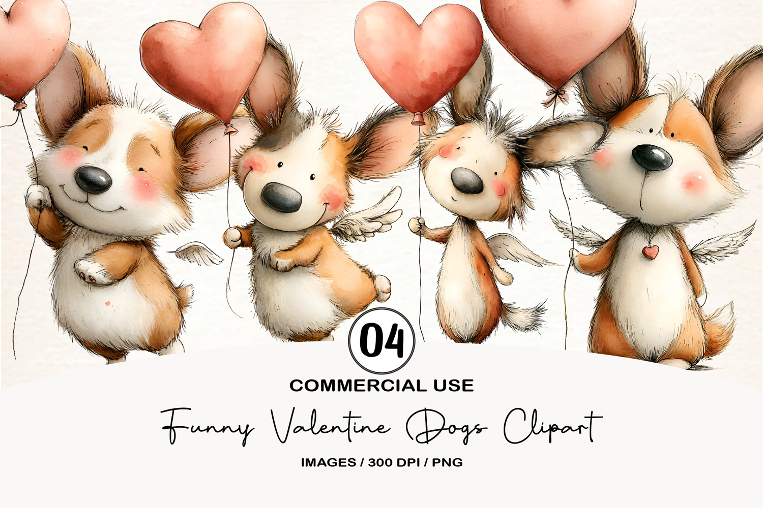 Funny Valentine Dogs Clipart, 4 Animal sublimation Design