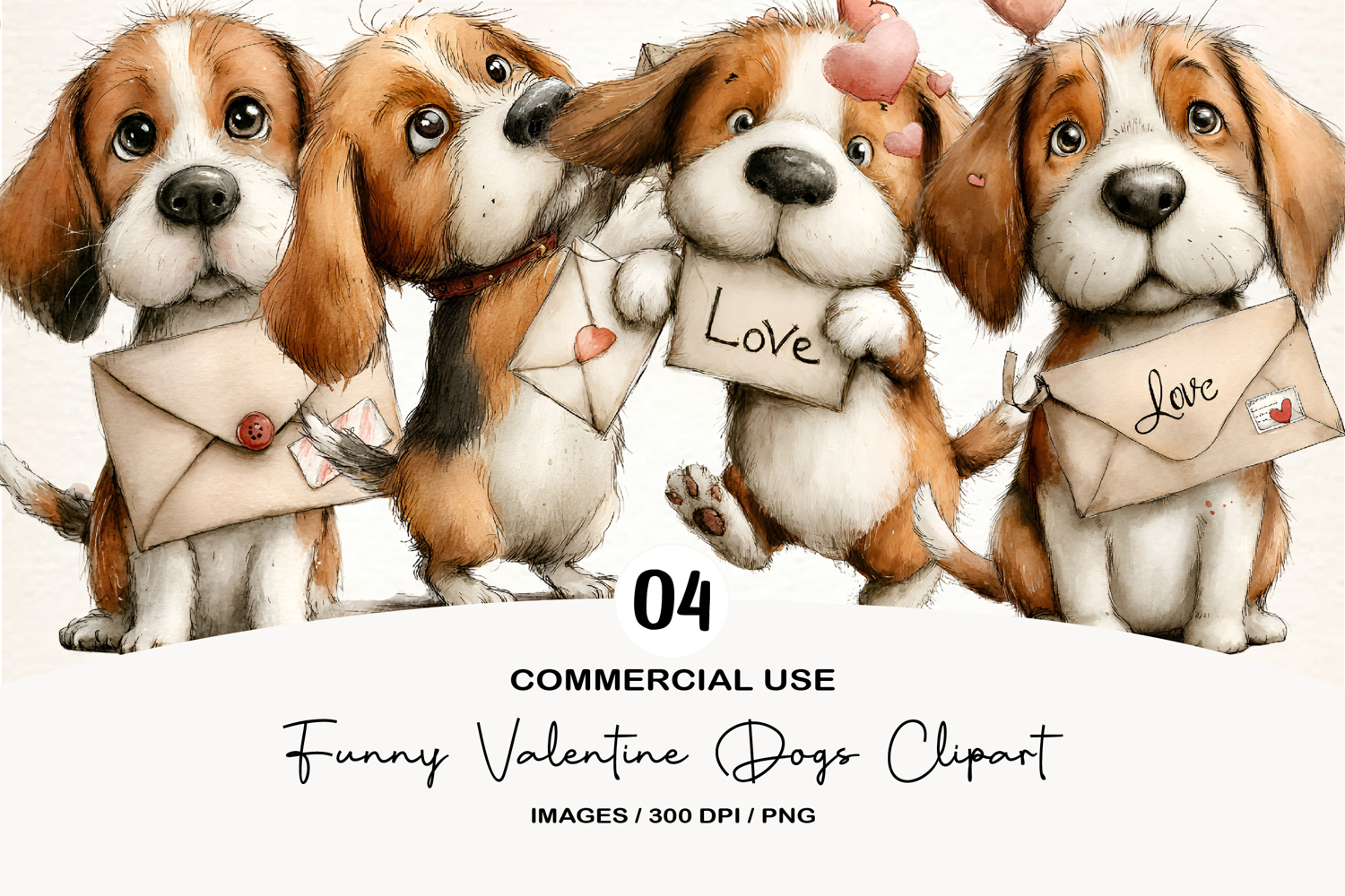 Funny Valentine Dogs Clipart, 4 Animal sublimation Design
