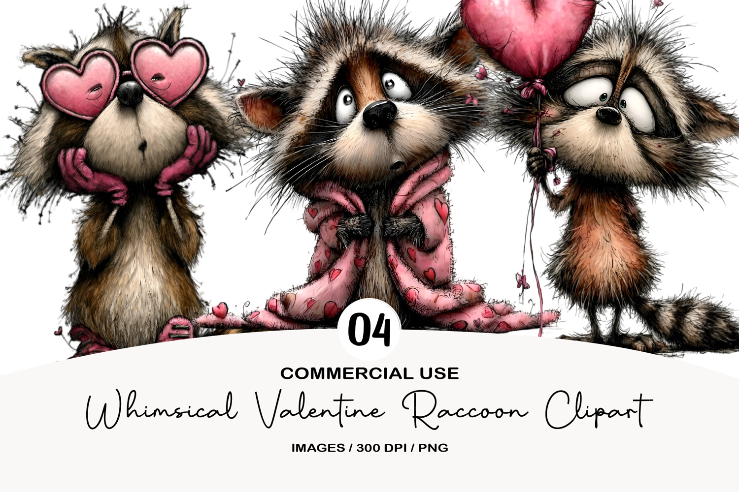 Whimsical Valentine Raccoon Clipart