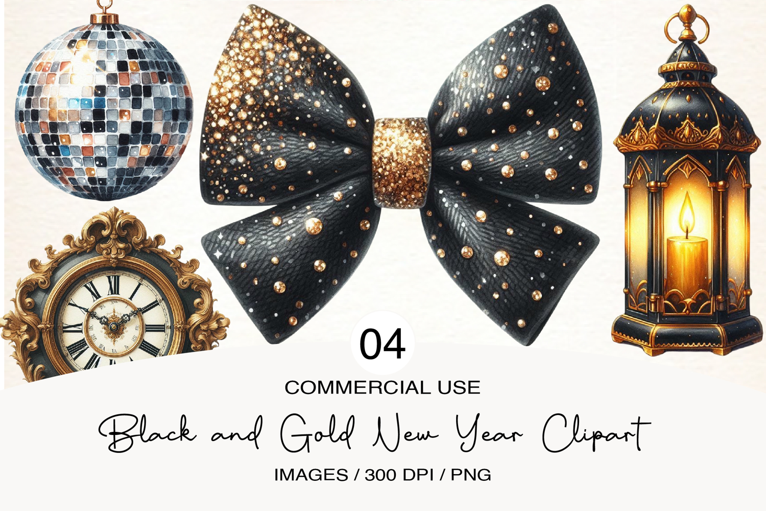 Black and Gold New Year Clipart example image 1