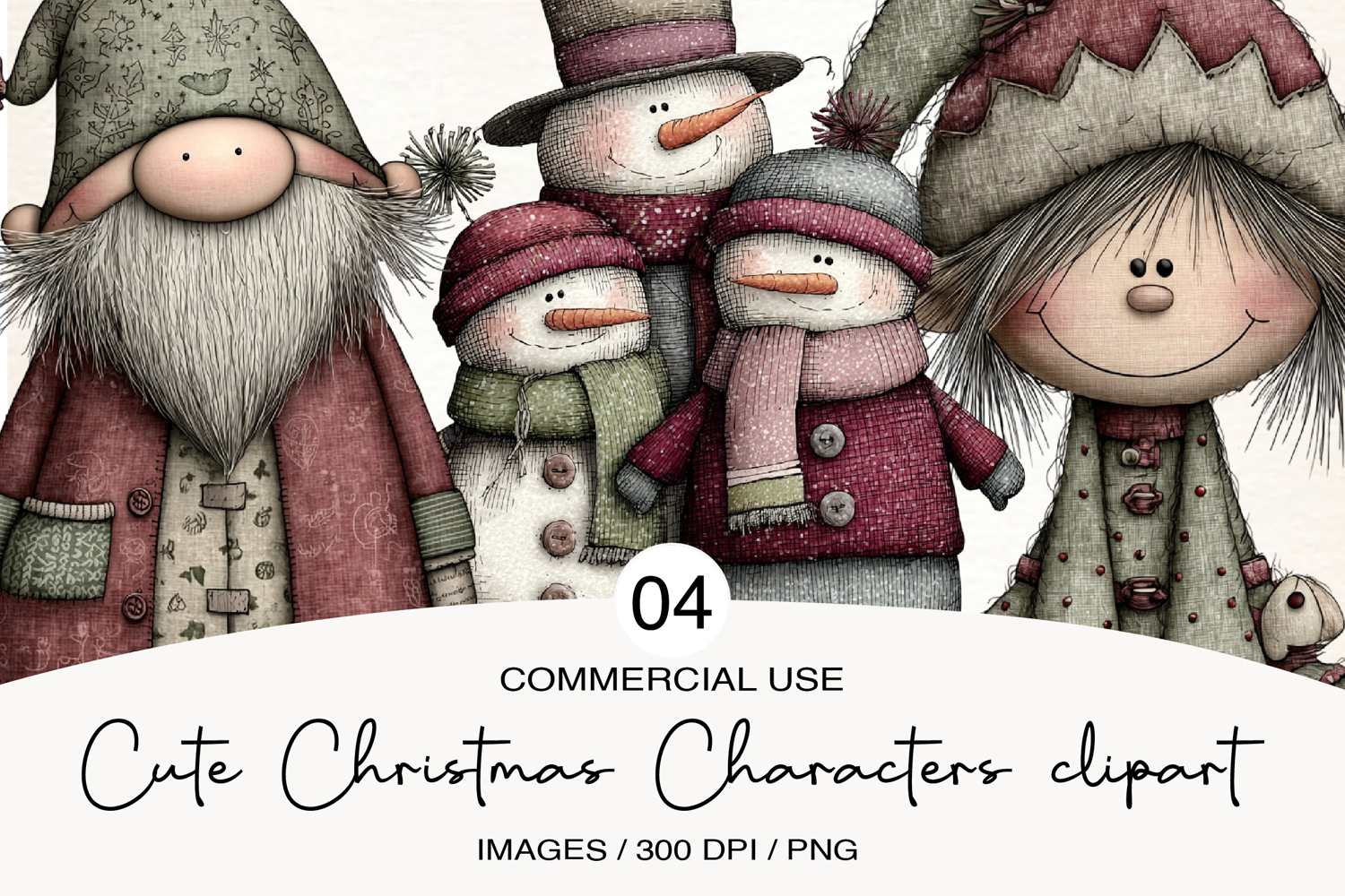 Cute Christmas Characters clipart example image 1