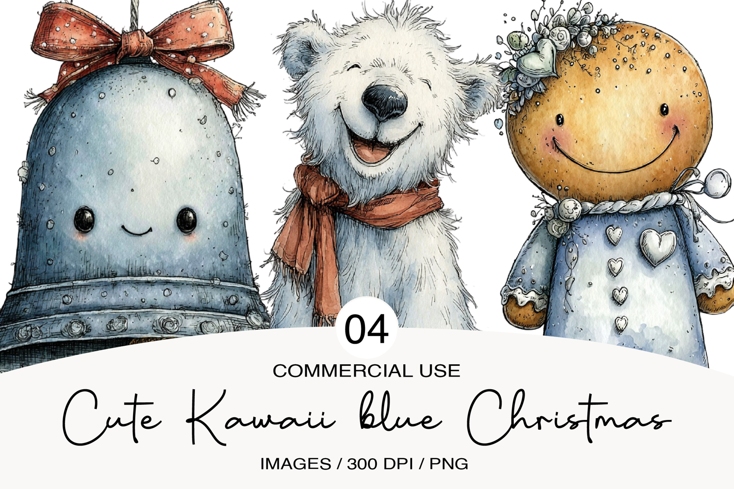 Cute Christmas Clipart, Kawaii blue Christmas example image 1