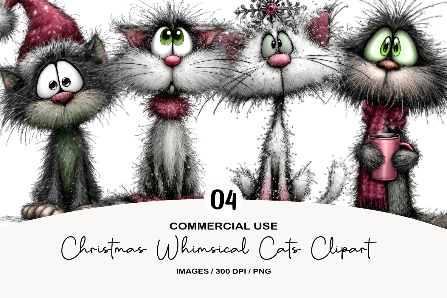 Similar Design Products to Christmas Whimsical Cats Clipart