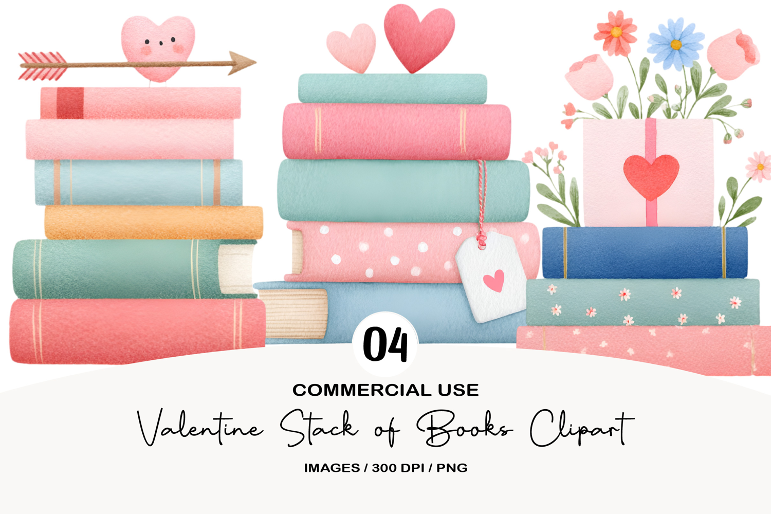 Valentine Stack of Books Clipart example image 1