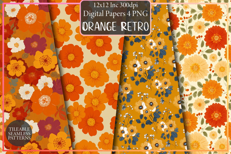 Similar Design Products to Orange Retro Flowers Digital Papers