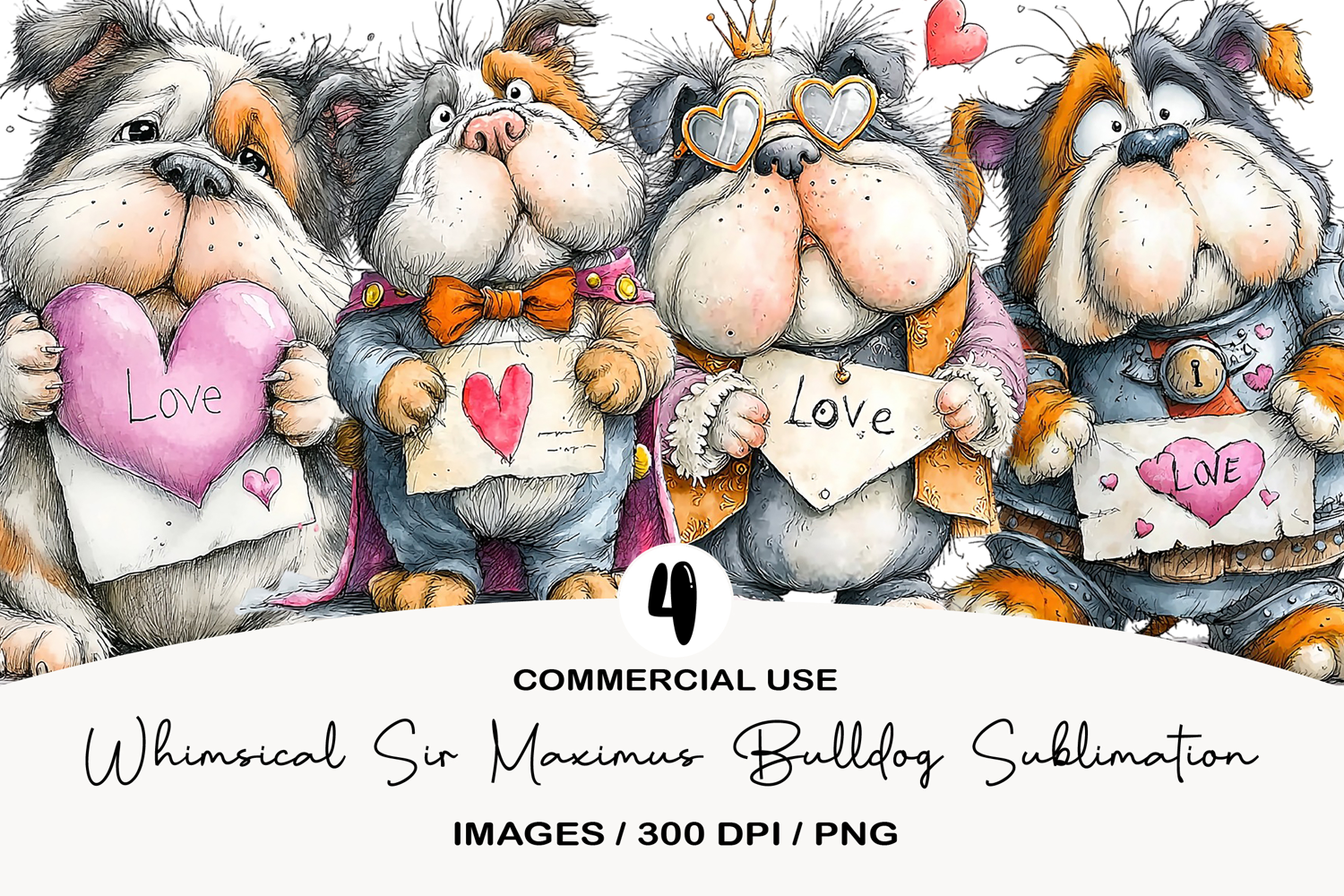 Funny Clipart Valentine's Day Clipart Sublimation Png Valentine's Day Sublimation Clipart Sublimation Png Clipart Design Clipart Png Bundle Animals Png Design Watercolor Funny Png Whimsical Sir Maximus Bulldog Sublimation